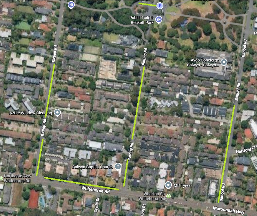Address: 517 Whitehorse Road, Surrey Hills VIC 3127 Parking map